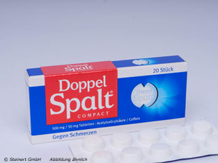 Doppel Spalt Compact Tabletten werden angewandt bei leichten bis mäßigen Schmerzen, Kopfschmerzen, bei Fieber, Entzündungen und Erkältungskrankheiten. Die Tabletten enthalten die Wirkstoffkombination Acetylsalicylsäure und Coffein. Entzündungen und Schmerzen entstehen unter anderem daraus, dass das Gewebshormon Prostaglandin ausgeschüttet wird. Acetylsalicylsäure hemmt bestimmte Enzyme, die an der Herstellung der Prostaglandinen beteiligt sind und verhindert somit eine weitere Ausschüttung. Somit vermindert Acetylsalicylsäure Schmerzen und Entzündungsbeschwerden. Coffein steigert die Durchblutung und hebt Ermüdungserscheinungen auf, außerdem erhöht es die Geschwindigkeit der Aufnahme von Acetylsalicylsäure in den Körper.